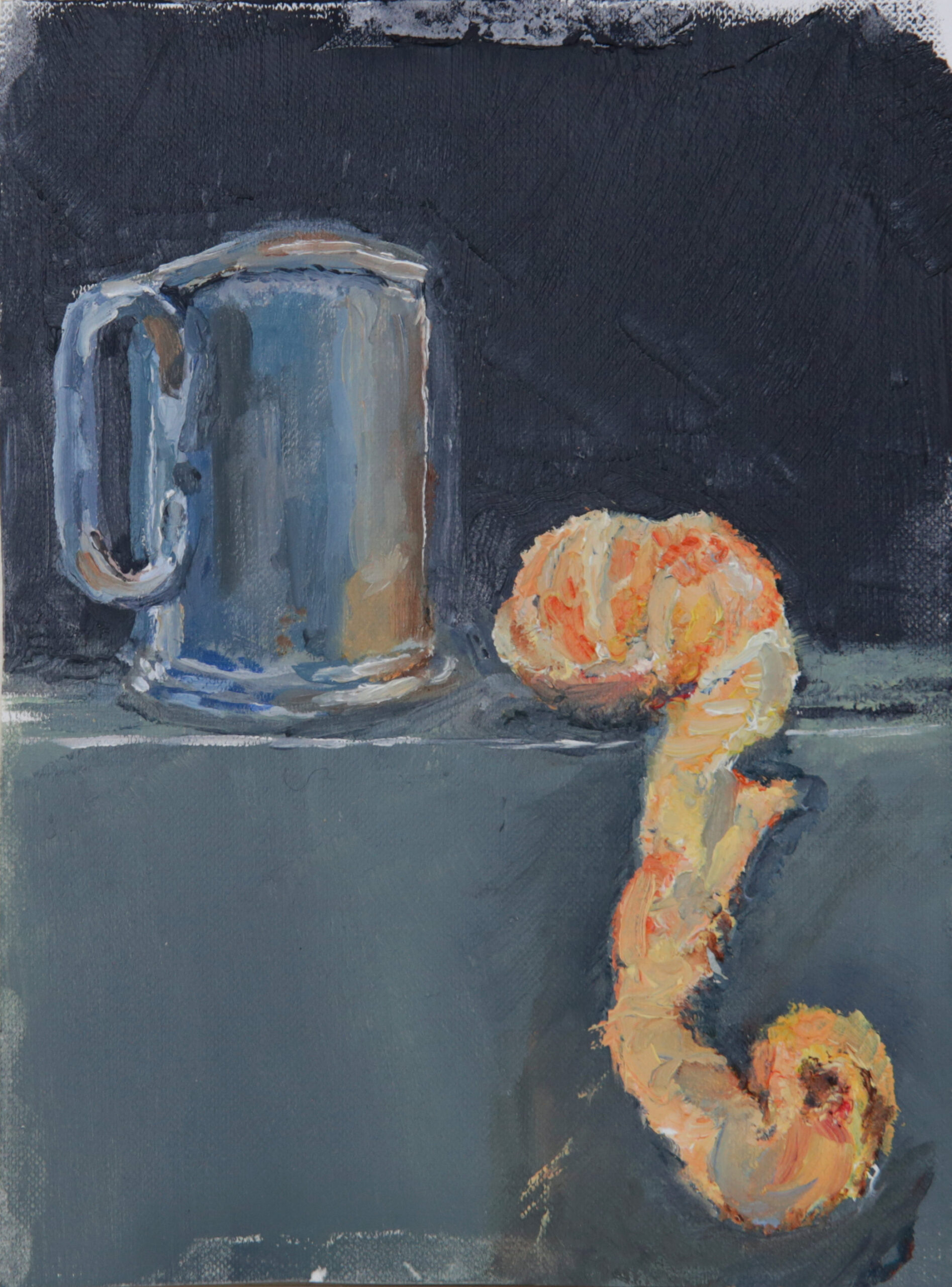 Stillevens betekenen voor mij vooral oefenen met techniek en het integreren in mijn eigen stijl. Transparantie schilderen (olieflesjes), spiegelingen (beker en mandarijn) schaduwen (boten in Essaouira), enz. Er blijft nog genoeg te leren. Voor specificaties en prijs graag even contact opnemen.